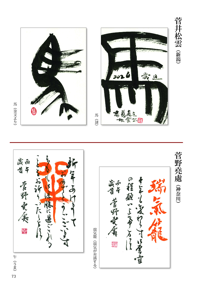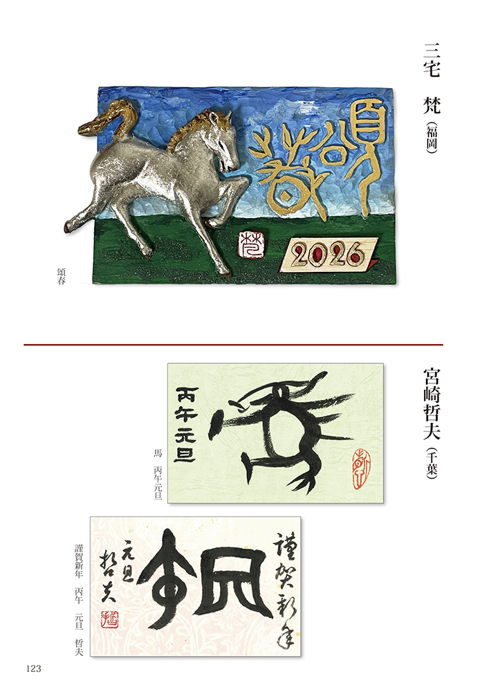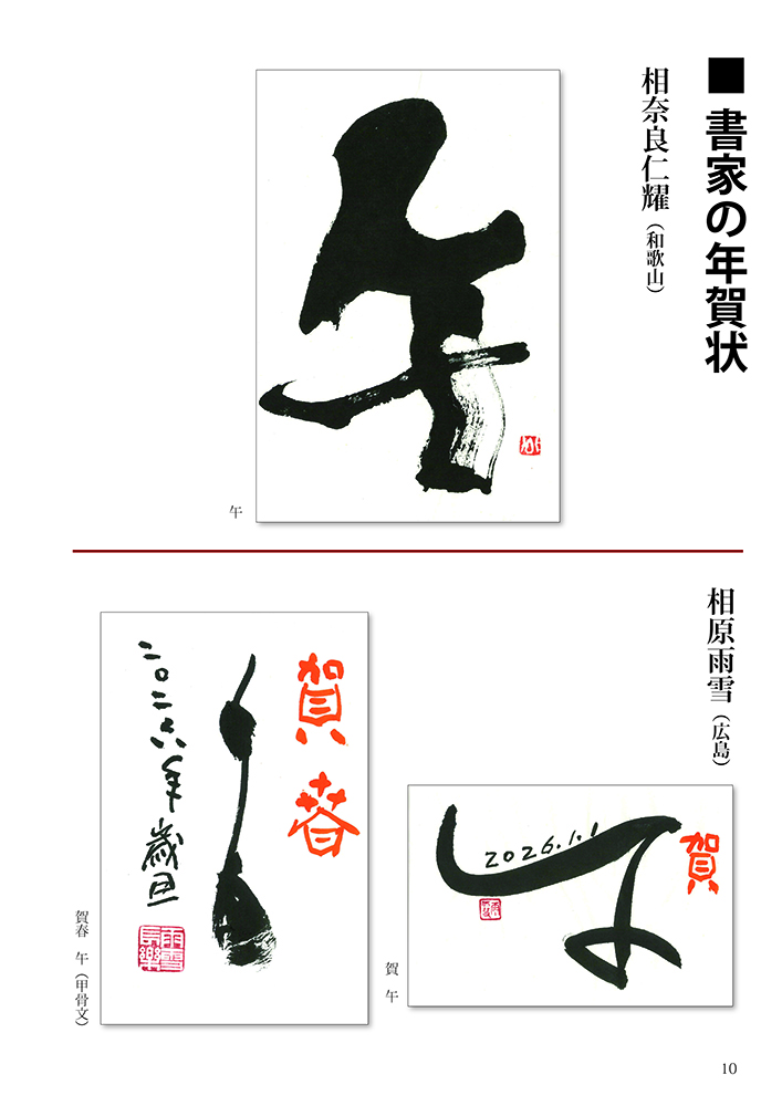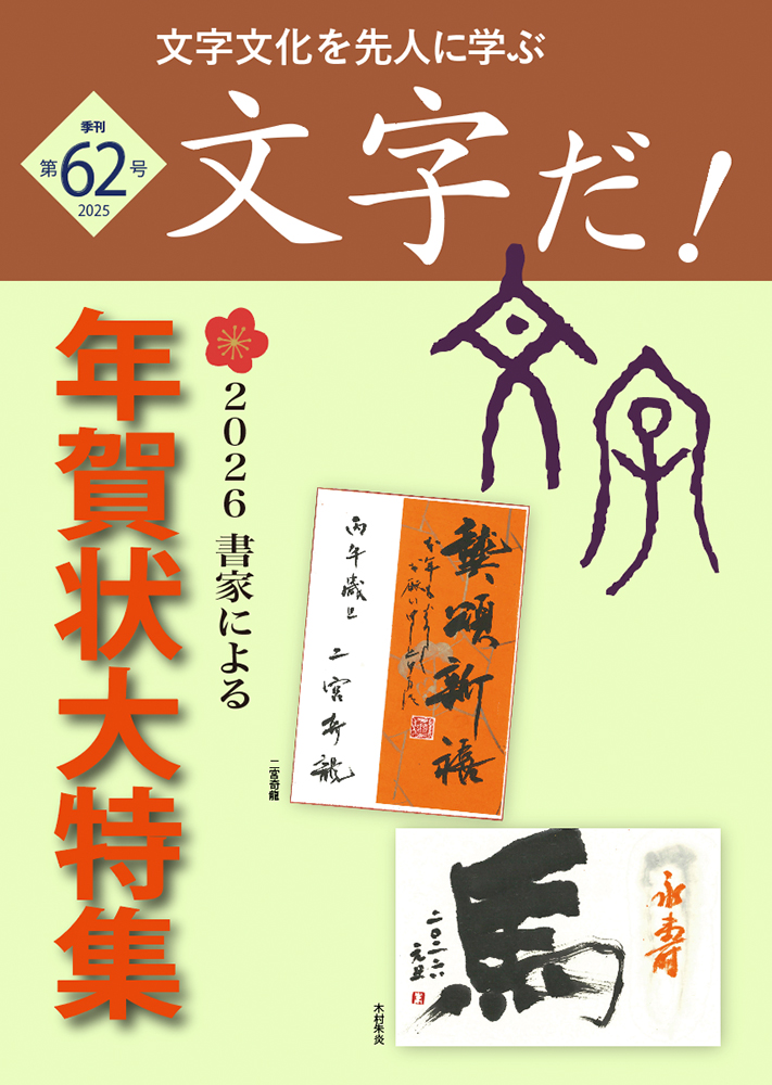 文字だ! 62号 『年賀状大特集』日本を代表する264人の年賀状を掲載 2026年1月7日から開催される書家による『新春年賀状展』。 本展に集まった現代を代表する書家264名の作品を収めた『文字だ!』62号(年賀状特集号)が11月1日より発売されます。 お名前 郵便番号 ご住所 電話番号 メールアドレス 希望冊数 ※58号より古いバックナンバーをご希望の場合は、直接お問合せ下さい。 62号『2026 年賀状特集号』(1200円+送料300円): 冊 61号(1200円+送料300円): 冊 60号(1200円+送料300円): 冊 59号(1200円+送料300円): 冊 ※2冊以上購入で送料無料 ご意見・ご要望 (任意) Δ